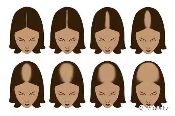 ① 雄性秃(最常见的脱发):男性荷尔蒙源性脱发,因为荷尔蒙中5a-还原酶的作用下,睾酮会转变成二氢睾酮,二氢睾酮会堆积在毛囊里减少头发生长速度直到终止长发。
