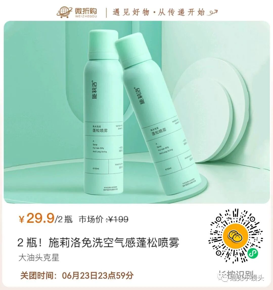 施莉洛免洗空气感蓬松喷雾 实发2瓶*150ml 买1瓶送1瓶!零售价29.9元