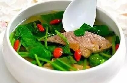 猪肝本身具有补肝养血、明目的作用,还能有效去除肺火,清热解毒。并且猪肝里面含有非常丰富的蛋白质和动物性铁质,可以调节内分泌失调,促进人体新陈代谢,有效美容养颜。菠菜具有非常强大的滋阴润燥、舒肝养血等作用,菠菜是秋季里最适合养肝的蔬菜,而且菠菜还利于顺通肠胃,促进身体排毒。猪肝与菠菜相配,营养价值更高。