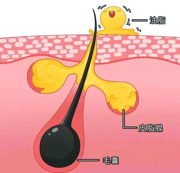 头皮的结构中有一个叫皮脂腺,皮脂腺的开口在毛囊里,毛囊产生毛发,头发从毛囊中产生,而皮脂腺的开口又在毛囊上端,就导致产生的油脂顺着头发流了出来。