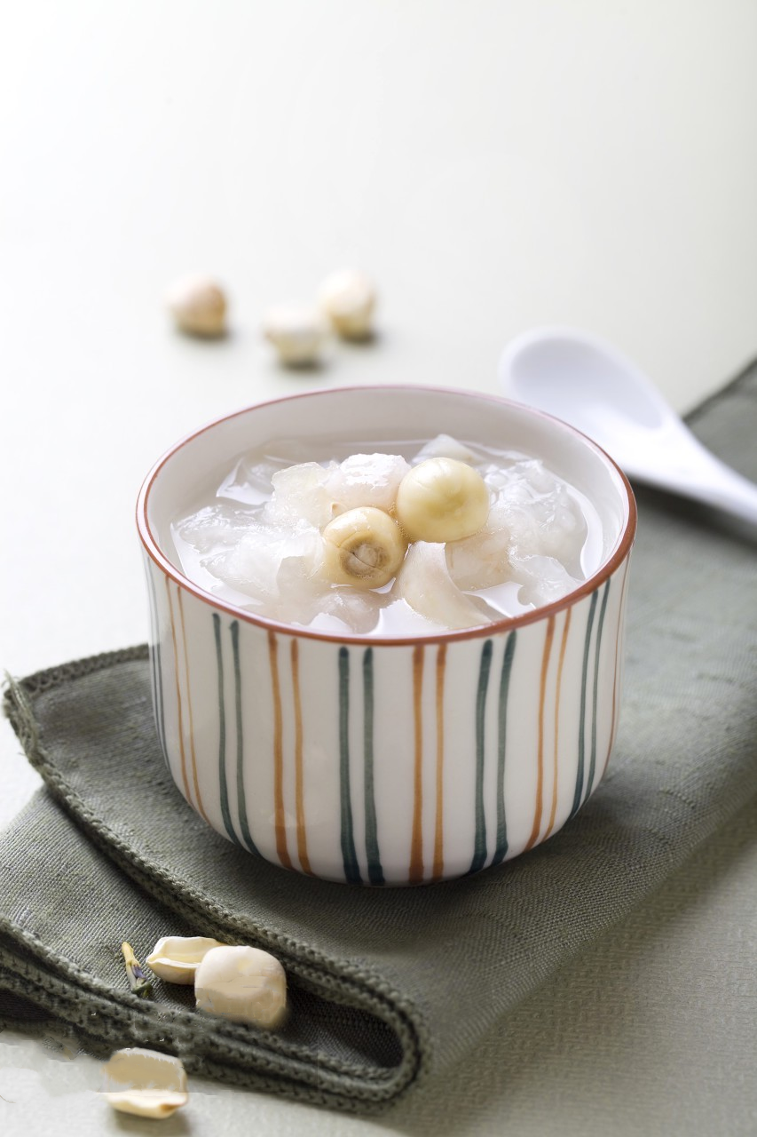 银耳性平、味甘淡,有滋阴、润肺、养胃、生津、益气、补脑、强心之功效。不但适宜于一切妇孺、病后体虚者,且对女性具有很好的嫩肤美容功效。莲子性平、味甘涩,有益心、补肾、止泻、固精、安神之效。银耳莲子糖羹有较强的滋补健身功能,是传统的润肤养颜佳品,还能帮助有效降肝火,平衡分泌。