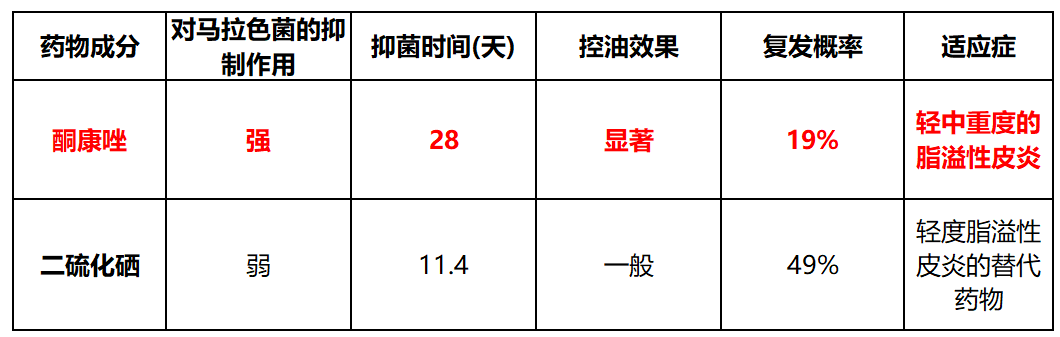 有效缓解头屑、头痒、爱出油情况,首先要加强清洁,避免皮肤过于油腻,建议正确使用发用洗剂。治疗脂溢性皮炎的发用洗剂,常见酮康唑、二硫化硒,现从抑菌效果、抑菌时间、控油效果/复发概率、适应症、安全性等方面对其进行比较[4][5][6][7]。