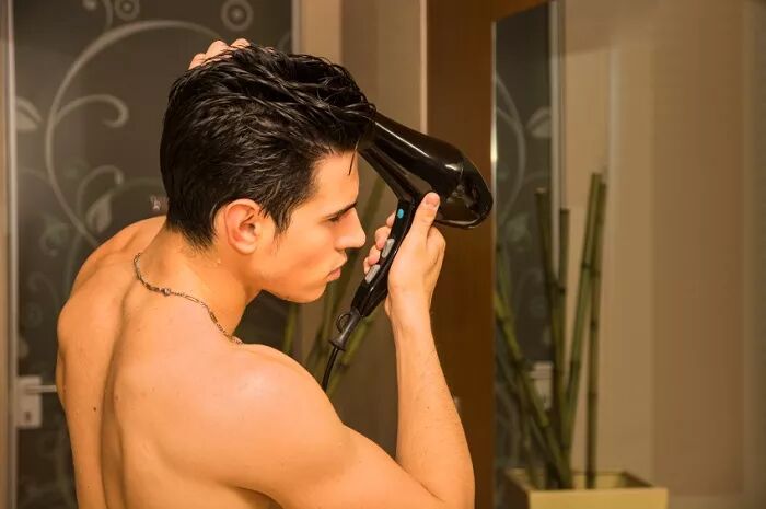 很多人会在洗头之后使用吹风机加快头发边干,但如果使用不当也会对头发造成损伤,产生大油头。那么如何合理使用吹风机呢?小编觉得各位男士在洗完头之后可以用毛巾包裹住头发,再使用吹风机。吹风机的温度也不能太高,温风即可,可以顺着发根到发尾的方向慢慢的吹。吹头发也只要吹到八分干即可,因为男士一般也都是短发,八分干既不会损害头发,也能够让头发湿润保持一点男性魅力。