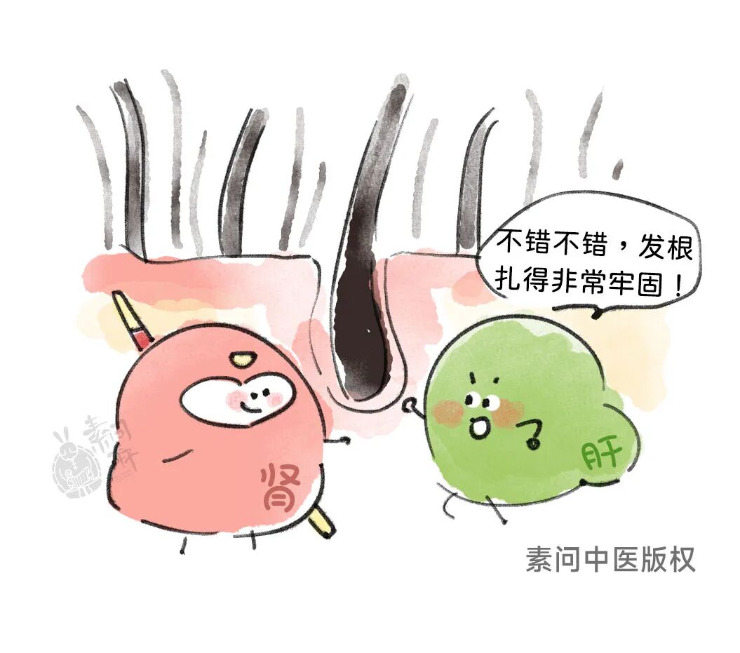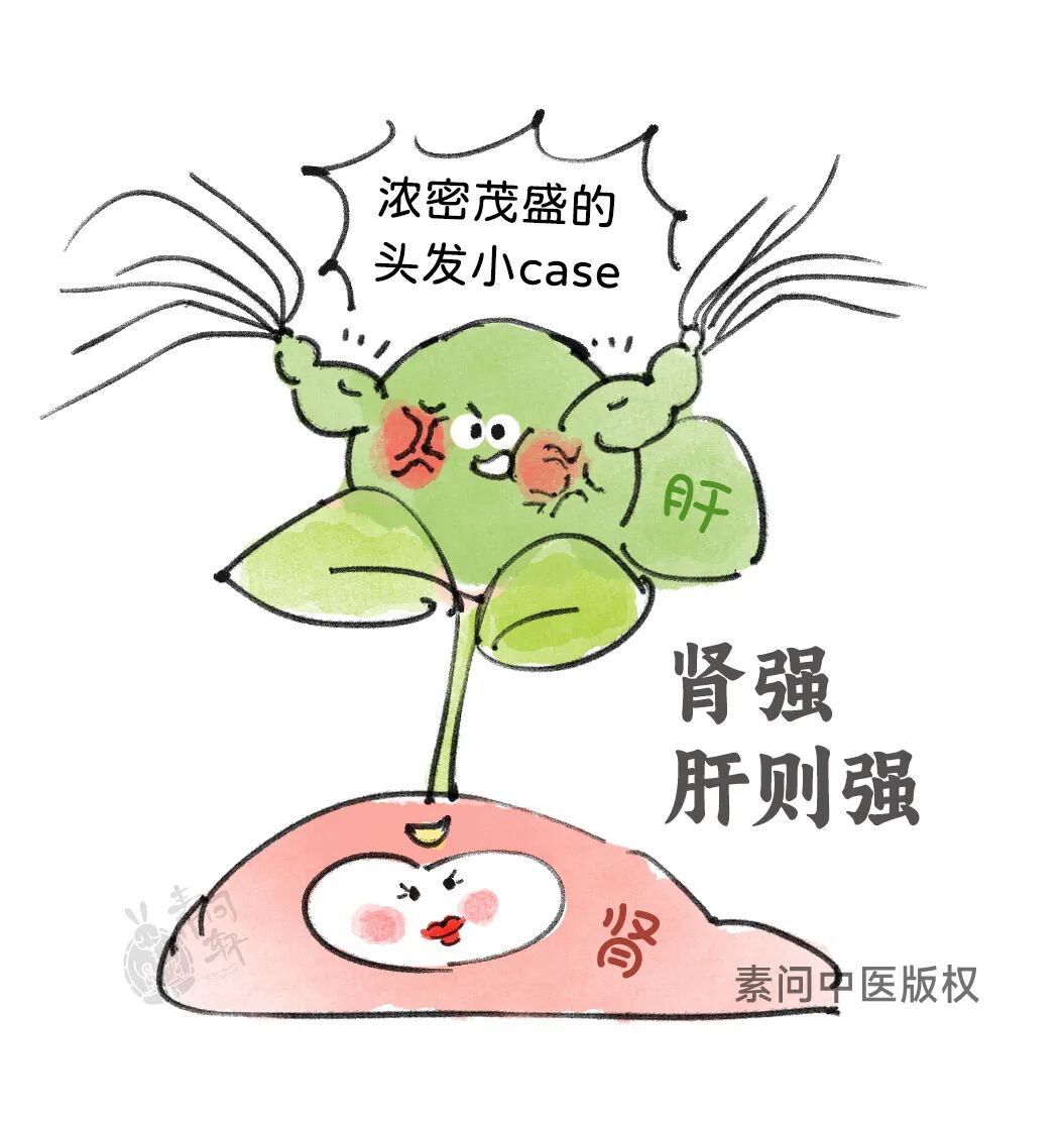 发为血之余,头发的营养来源于血,而肝藏血;肾其华在发,肾藏精,精能化血,精血旺盛则毛发壮而润泽。
