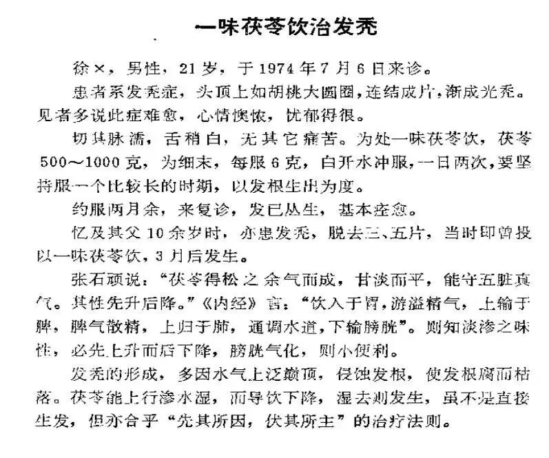 岳美中岳老曾成功治过一例脱发,用的不是什么贵药神药,就单独一味茯苓。