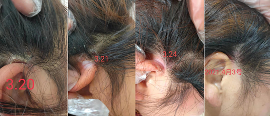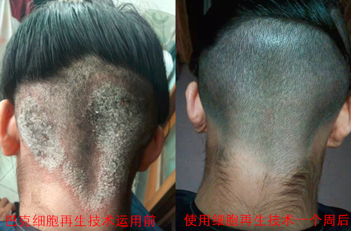 案例2:患者女,患有头癣3年多时间,在当地县医院皮肤科进行治疗多次,效果仍不尽人意,后经同事介绍了解到巴克细胞再生技术,运用巴克细胞再生技术进行调理仅半个月,创面完好修复!!