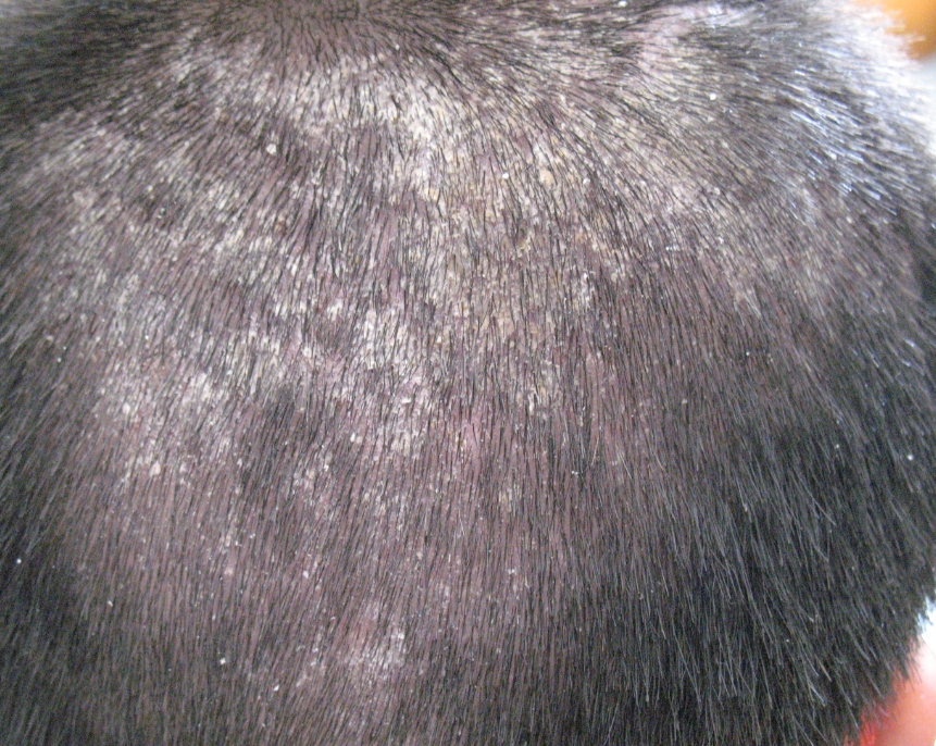 头癣是皮肤癣菌感染头皮和毛发毛囊所致疾病,常常表现为头皮红斑、脱屑、丘疹、脓疱伴脱发,伴有痒,痛,严重的脓癣不及时治疗会留下永久性的疤痕和脱发区。当然,我们发现也有很多成人头癣,表现为不典型的头皮屑增多,头皮痒,炎症不重,可匿感染许多年的,一直被误诊。