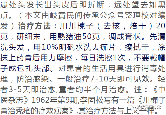 单味川楝子治疗头癣