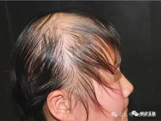 ①严重者头发全部脱落,称为全秃。