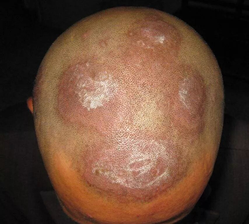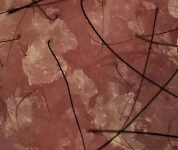 3.头皮屑多,而且头皮发红,头发呈束,还要排除寻常型银屑病(俗称牛皮癣,尽管多数患者身上也在皮损,但少数只发于头皮,容易误认为头皮屑多或脂溢性皮炎)