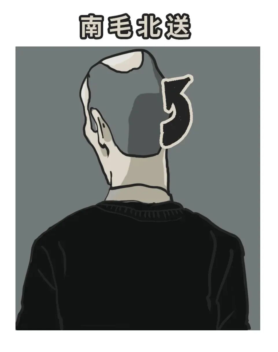 原理简单粗暴——将毛发旺盛区(一般是后枕部)的毛囊移植到脱发处,俗称: