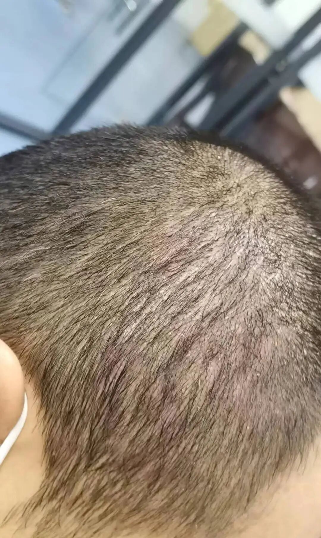 头皮可见数个丘疹。