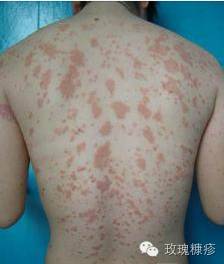 2不去看医生,等待着自愈的小伙伴,可要注意咯。玫瑰糠疹是会给患者带来很大的一片色素沉着的,严重的影响了容貌,如果出现在脸上的话。因为这个病有自限性,所以一般不会太长时间的发作;但是总有例外的,有的人纵生患病。