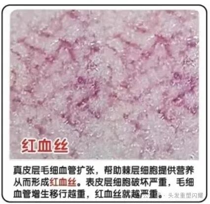 真皮层毛细血管扩张,帮助棘层细胞提供营养,从而形成红血丝。表皮层细胞破坏严重,毛细血管增生移行越重,红血丝就越严重。