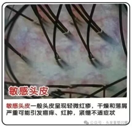 敏感头皮:一般头皮呈现轻微红疹、干燥和落屑,严重可能引发瘙痒、红肿、紧绷不适症状。