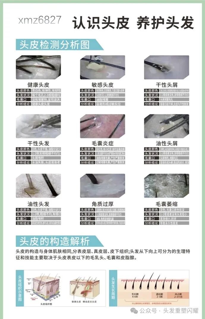2)分析头皮状况;