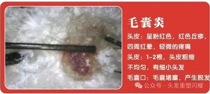 头皮:头皮呈粉红色、红色丘疹,四周红晕,轻微的疼痛。