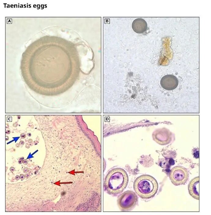 UpToDate临床顾问:绦虫是雌雄同体的扁平状蠕虫,可寄生在人的胃肠道内。有些绦虫主要感染人,而其他一些则以动物为自然宿主,但也可引起人类感染。牛带绦虫感染在全球都有发生,但最常见于习惯食用未煮熟牛肉的地区,如欧洲和部分亚洲地区(图1)。大多数绦虫成虫的人类携带者没有症状;但也可能有一些症状,包括恶心、厌食或上腹痛,可发现外周血嗜酸性粒细胞增多。一般通过在粪便中找到虫卵或节片来确诊(图2)。