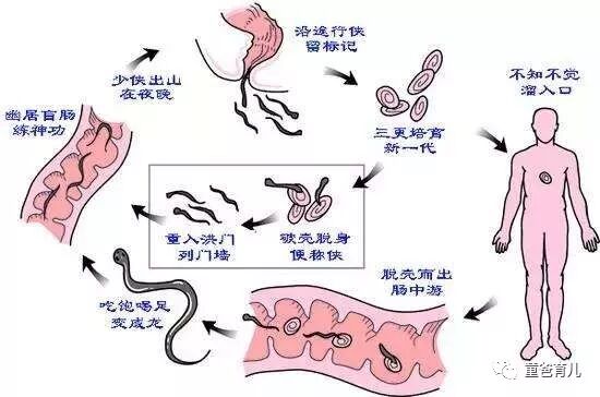 UpToDate临床顾问:蛲虫的生活史始于受孕的成年雌虫在肛周褶皱上产卵。用手抓挠肛周区域,然后受污染的手将感染期虫卵转移至口部,从而导致自身感染。食用受污染的手触摸过的食物或者处理受污染的衣物或床上用品,可以导致人际传播。大多数蛲虫感染无症状。蛲虫病最为常见的症状为肛周瘙痒,主要发生于夜晚。有时载虫量过大以至于发生腹痛、恶心或呕吐的症状。