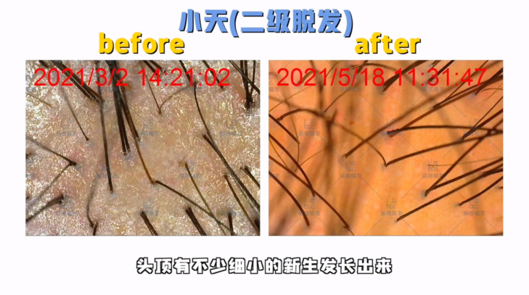 但更明显的还是对头皮环境的改善。同样是24小时不没洗头,能看出两个半月后,整个头皮都干净了很多。