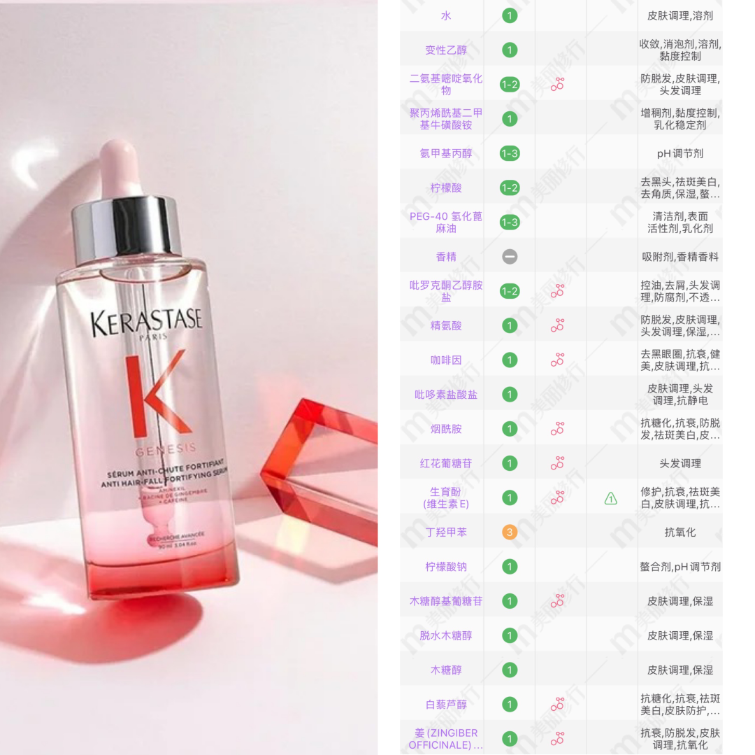 最新出的一款是卡诗元气姜粉精华,除了雅美尼斯以外,还添加了抑制油脂的咖啡因、抗衰的烟酰胺。