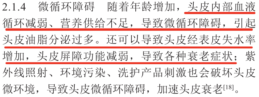 头皮内部的血液循环会随着年龄增长而减弱,头皮逐渐变薄,屏障功能下降,加速头皮衰老的症状。