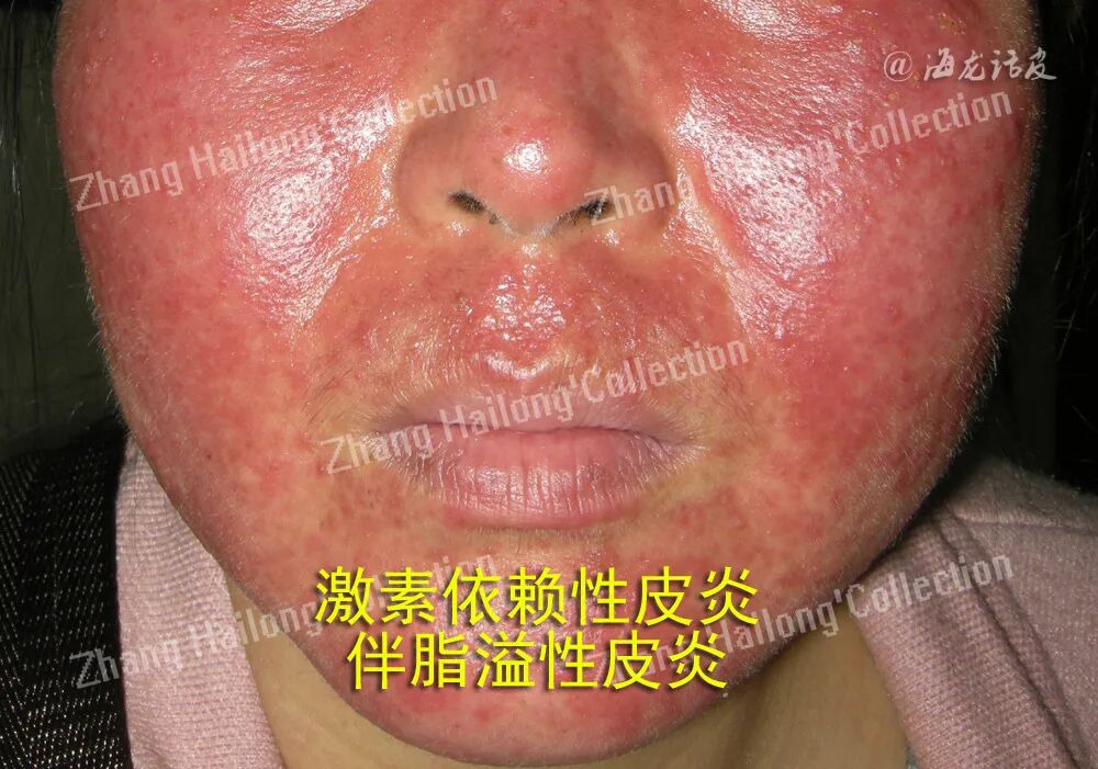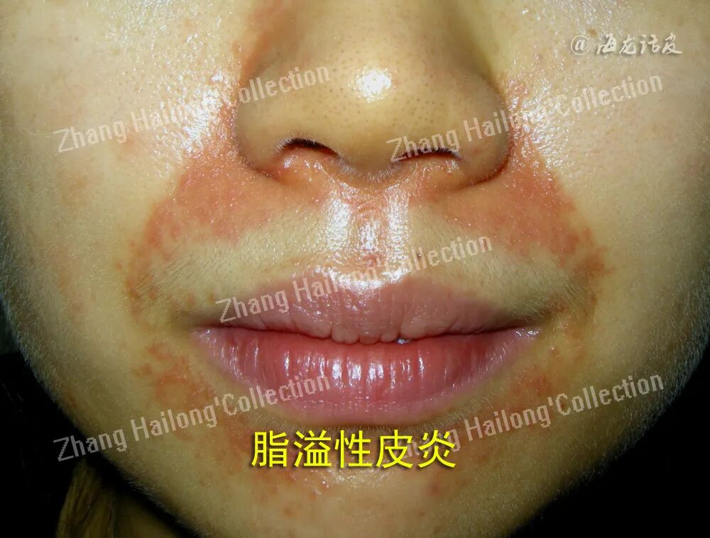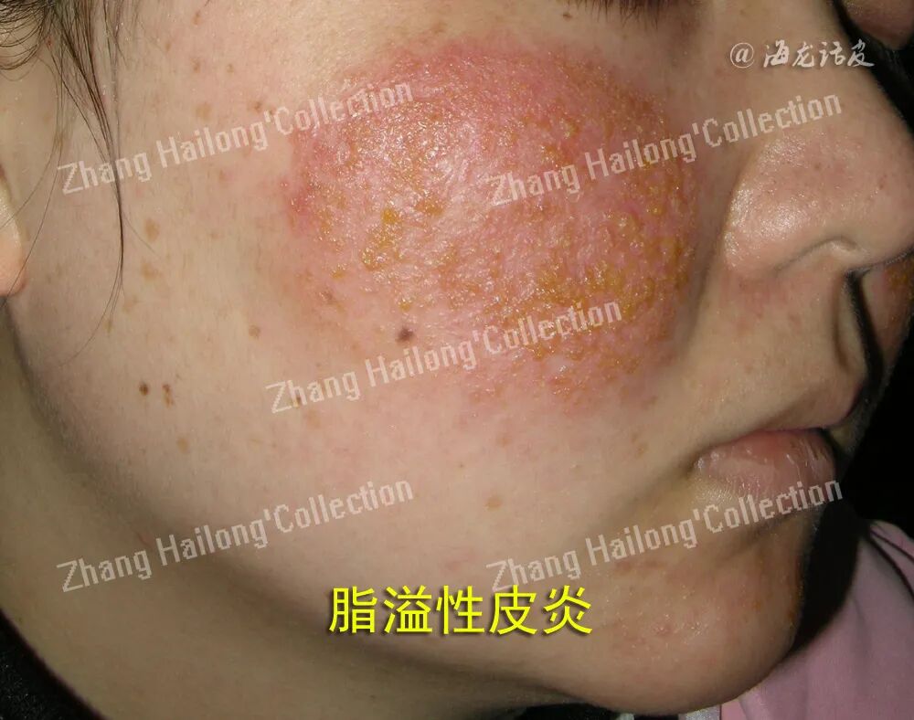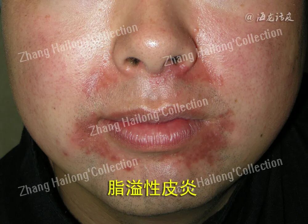 SD初发皮损多表现为毛囊周围炎症性丘疹,随病情发展,丘疹融合成大小不等的黄红色斑片,边界清楚。红斑基底上附有糠样或斑片状鳞屑,鳞片通常有 黄色、油腻的外观。水疱或结痂少见,多数是刺激导致(如过度治疗)。伴有不同程度瘙痒,由于瘙痒而搔抓,可以引起继发性感染。外用药不当可引起接触性皮炎或湿疹样改变,严重者可发展为红皮病。