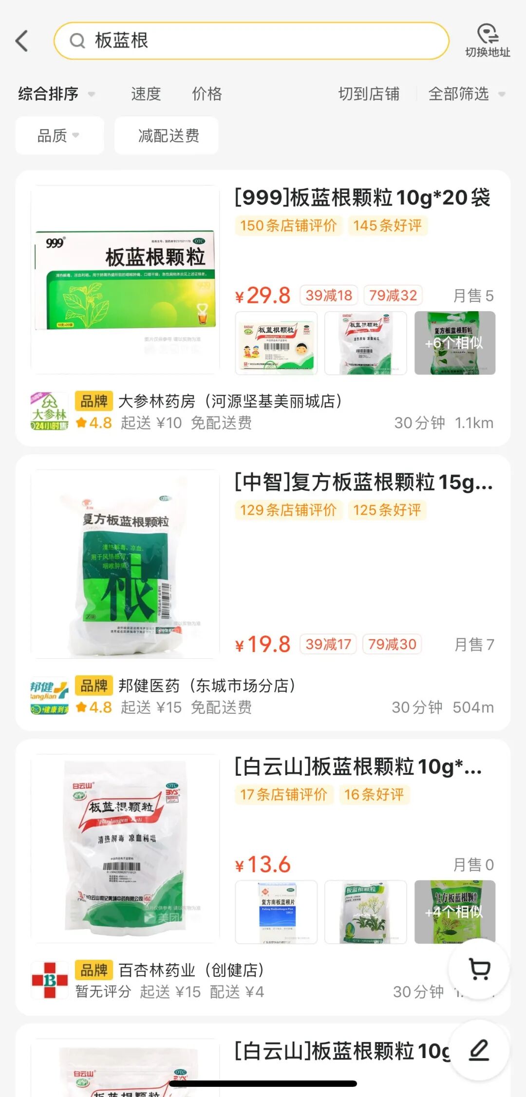 同时,记者通过外卖网络平台搜索发现,各种品牌的板蓝根都在正常销售,销售额也比较平稳。