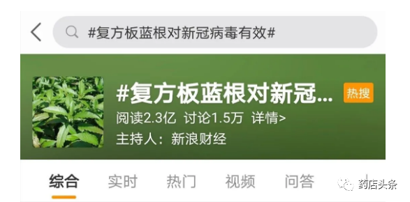 随即复方板蓝根对新冠病毒有效迅速冲上了微博热搜,引发大量讨论。