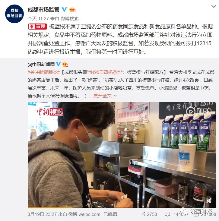 “N95口罩奶茶”上市,灵魂配方:板蓝根+红糖!监管部门却说...