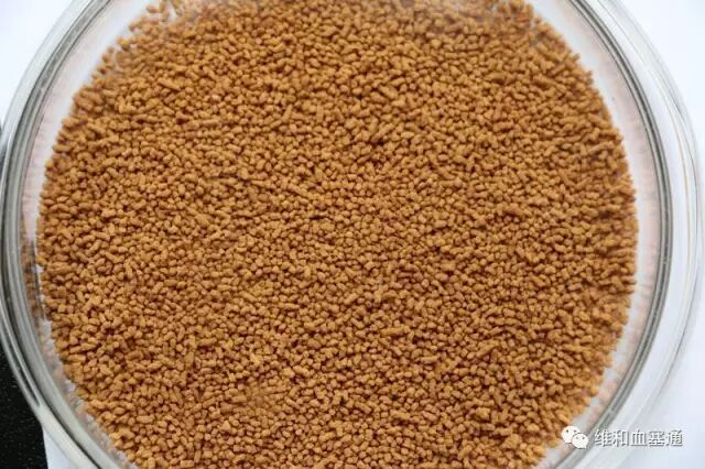 维和板蓝根颗粒色泽呈棕色或棕褐色,颗粒均匀。(按《中国药典》2015版粒度标准规定不能通过一号筛和能通过五号筛的综合应不得超过15%,而维和板蓝根颗粒此项的检验结果甚至不足1%。)