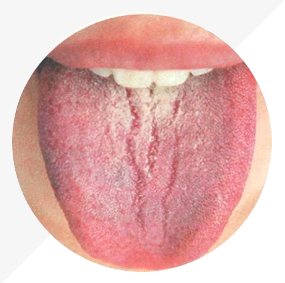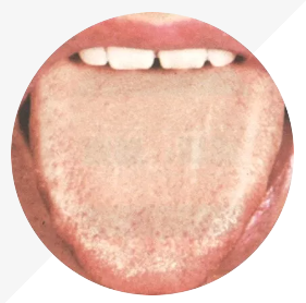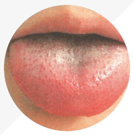 此时,舌头颜色发红,因为有热,舌苔会发黄,且舌苔很少,基本上难以看到。