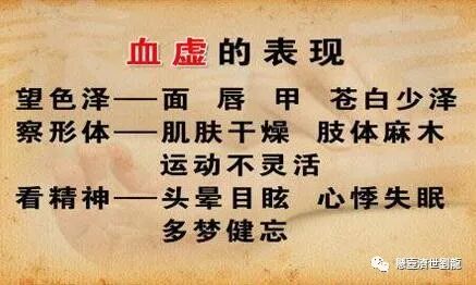 气血两虚:气血两虚一般出现在贫血、白细胞减少症、血小板减少症、大出血后、妇女月经过多者等,其主要表现为;既有气虚的表现,又有血虚的表现,进补宜采用益气生血、培补气血、气血并补。