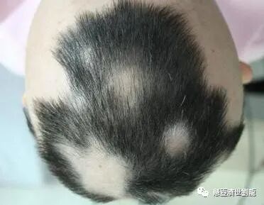 1.心血虚损,症见:头发突然成圆形或椭圆形片状脱落,不留一茎,患处皮肤光亮,无炎症,或有轻度发痒,如虫行,或毫无感觉,严重者全部头发及眉毛均脱光,伴有心悸,气短,神疲自汗,动则尤甚面色白,体倦乏力,舌淡嫩,脉细弱无力或结代。治以养血安神。