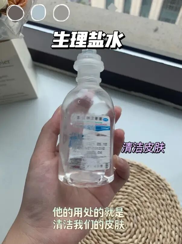 2:拿出盐水倒在湿敷棉上,先来回擦擦,再去做3min湿敷。