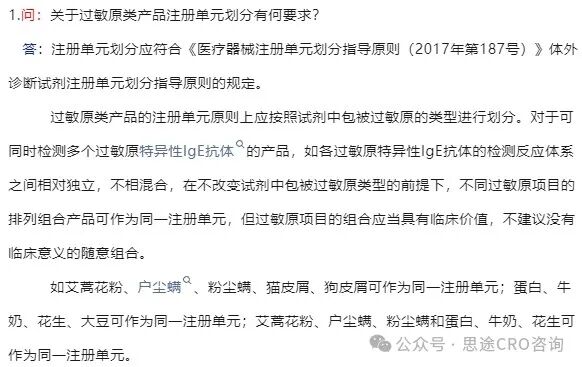 当一个产品能够同时检测多种过敏原特异性IgE抗体时,情况变得稍微复杂一些。原则上,只要各个过敏原特异性IgE抗体之间的检测体系相对独立,并且在整个测试过程中不会相互干扰或混合,则可以将这些组合视为同一个注册单元处理。这样做的前提是不改变每种过敏原的基本属性及其对应的检测条件。值得注意的是,在设计这样的多项目组合时必须考虑到临床实际需求,避免无意义地堆砌过多项目而忽视了其真正的应用价值。比如,将艾蒿花粉、户尘螨、粉尘螨等常见吸入性过敏原放在同一个测试板上是有道理的,因为它们都是导致季节性鼻炎的主要因素;同样地,把牛奶、花生、大豆这类食物过敏原放在一起也符合逻辑,因为这三者之间存在交叉反应的可能性较大。但如果尝试将完全不相关的过敏原强行组合起来,则缺乏科学依据支持,也不利于临床诊断工作的开展。