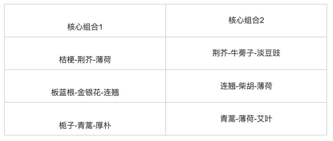 表7 治疗儿童感冒类中成药(风热感冒类)核心组合