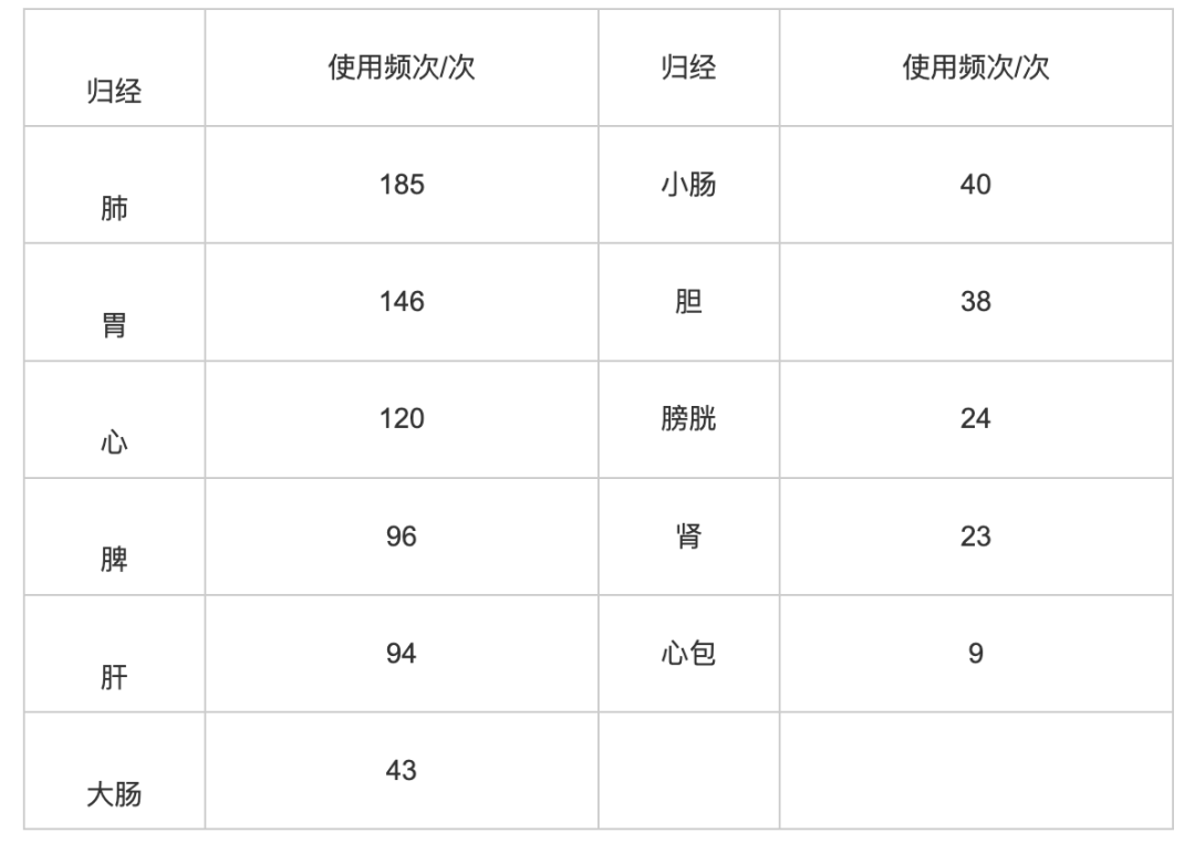 表4 治疗儿童感冒类中成药所用中药归经分布