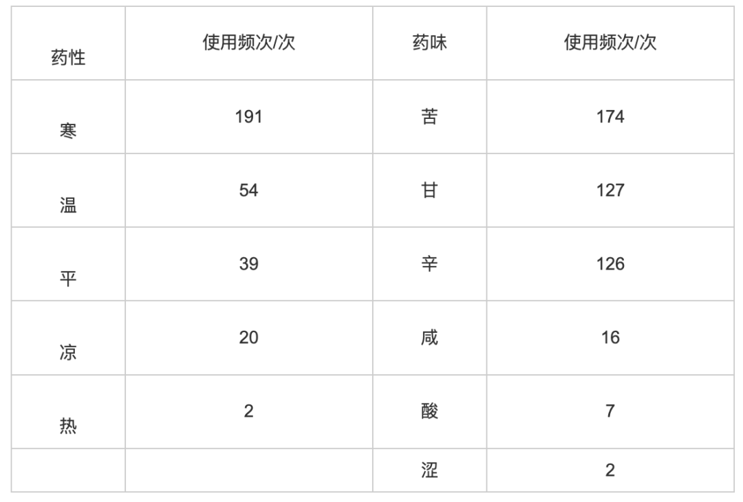 表3 治疗儿童感冒类中成药所用中药性味分布