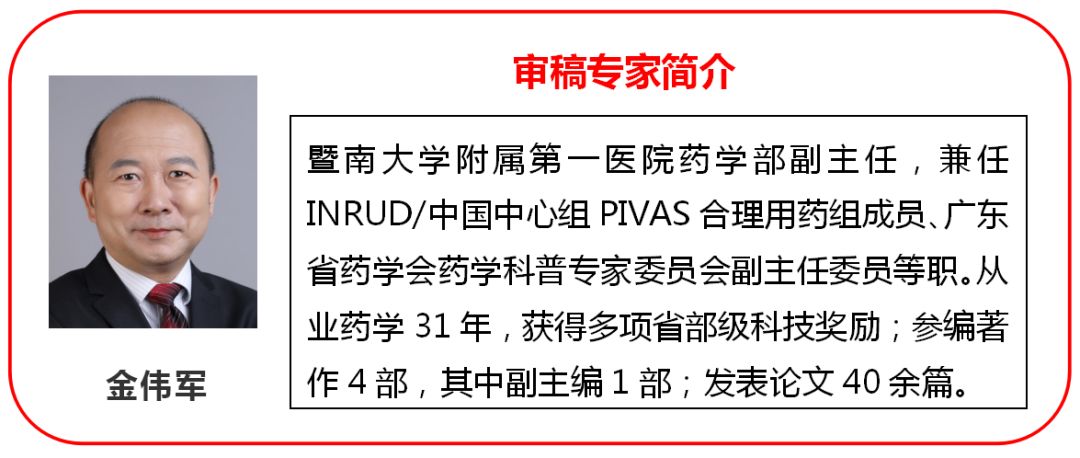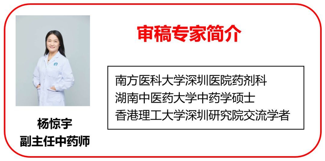 审稿:广东省药学会 南方医科大学深圳医院 杨惊宇/刘丽亚/广东省药学会 暨南大学附属第一医院 金伟军