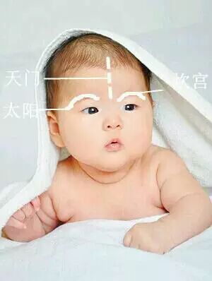 开天门100~150次,用两只手的大拇指轻轻的自眉心交替直线推动至前发迹线。