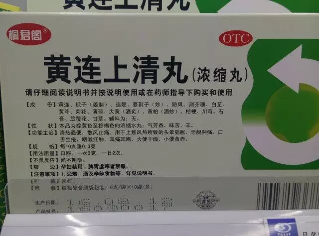 黄连上清丸&栀子金花丸——用于实火,头晕、牙痛、口疮,伴见尿黄、便秘。不可久服,因其中含有大黄,久服易导致肠道黑变