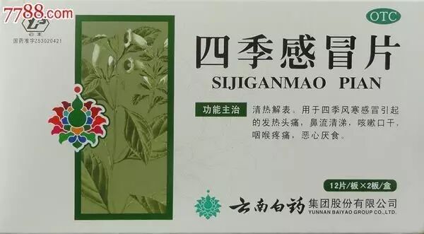 四季感冒片——用于轻度外感寒热症状不明显时,轻度的发热、头痛、流清涕