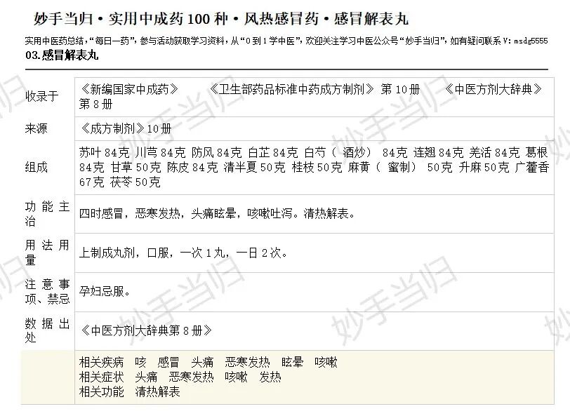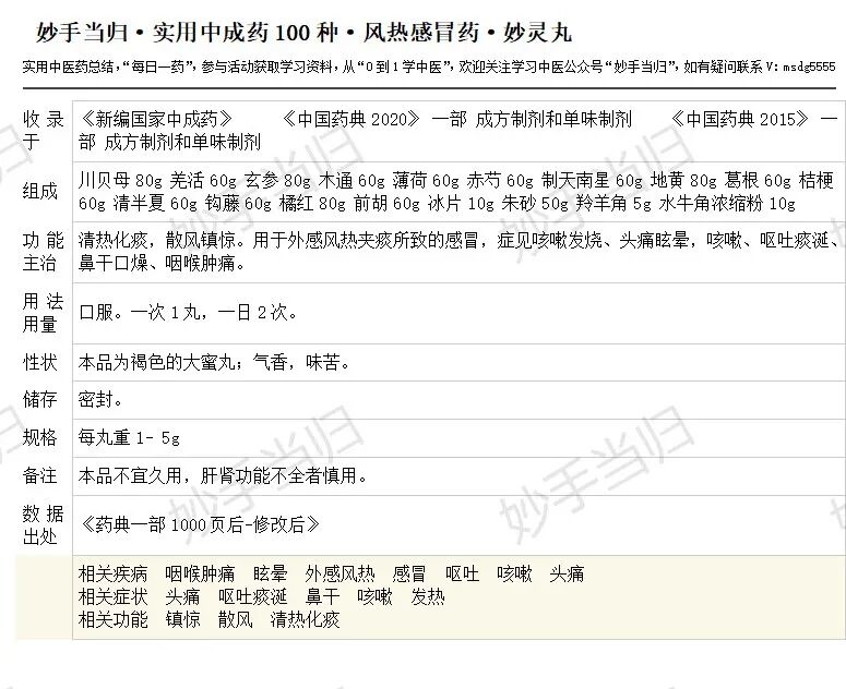 风热感冒第一方——妙灵丸