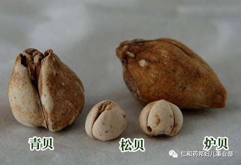 川贝母按照性状不同分为松贝、青贝和炉贝。具体的特征大家记住松贝的怀中抱月、青贝的观音合掌、炉贝的虎皮斑等特征就行了,这里我就不细说了。见下图。