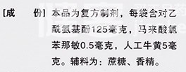 小儿氨酚黄那敏名字中的那敏是指的马来酸氯苯那敏(扑尔敏),氨酚就是对乙酰氨基酚(扑热息痛),这两个的确是正经的现代化学药物成分。