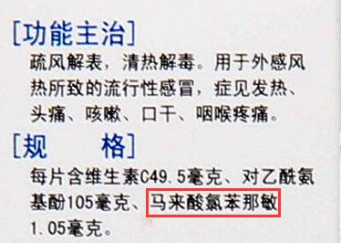 而感冒清感冒灵之类的最常见中成药感冒药,里面都有马来酸氯苯那敏,只不过在名字里看不出来罢了: