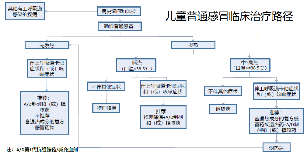 ✔ 无发热者:不用药;或用A/D复合制剂;不主张使用含解热镇痛药的感冒药