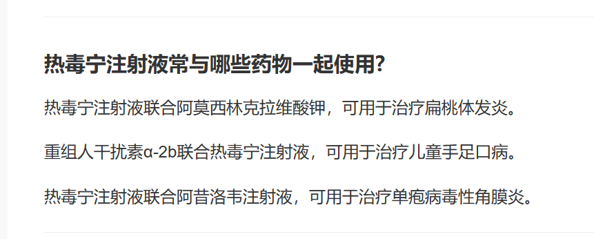 但是热毒宁很少单独使用,经常和其他药物联用,具体怎么用呢?