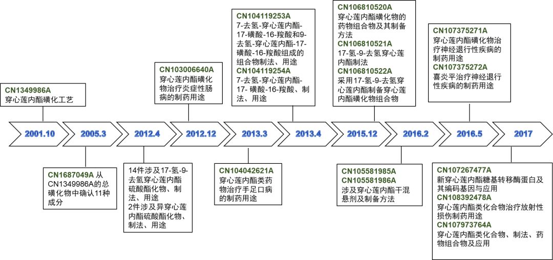 对于中药注射剂,报告给出了喜炎平、血必净、热毒宁、痰热清、醒脑静、参附、生脉和参麦注射液的专利技术路径和研发思路,其中,显示喜炎平具有多方面抗病毒活性,并能抗SARS冠状病毒,建议进一步深入研发。